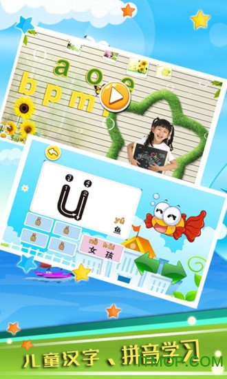 小孩掌握了拼音技能后宝宝就能自己学习唐诗国语诗词童谣,写字,识字,认字,看动物乐园故事书儿歌。本软件包含所有的学前汉语和益智游戏,还特别增加了亲子互动环节,让家长可以陪伴孩子一起学习,增进亲子关系的同时提升学习效果。