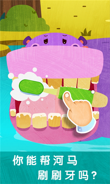 通过简单的手指滑动,孩子们可以操控小鸟的喙为河马进行口腔清洁,还能学习正确的刷牙方法。当遇到受伤的小动物时,小朋友要细心为它们涂抹药膏,培养关爱他人的意识。