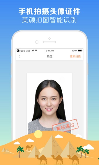 【美颜拍摄】内置专业级美颜相机,支持签证头像照片和证件照片的智能拍摄,自动抠图识别,确保照片100%符合各国签证要求;
