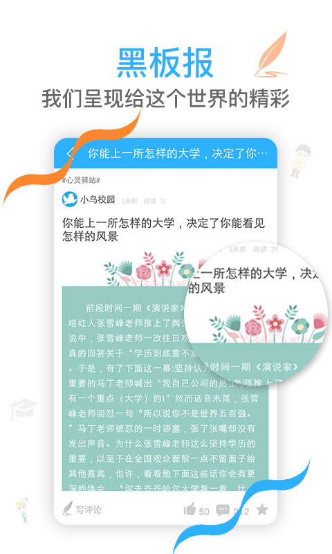 黑板报板块提供即时的教育资讯动态,包括最新学习方法经验分享、大学详细介绍、专业深度解读、心理辅导指南、科普知识等内容。这个板块不仅能帮助用户开阔眼界、增长见识,更能提高认知水平,为用户提供科学的大学填报指导、专业选择建议和人生规划参考。我们定期更新内容,确保信息的时效性和准确性。
