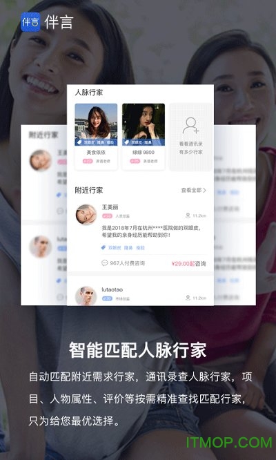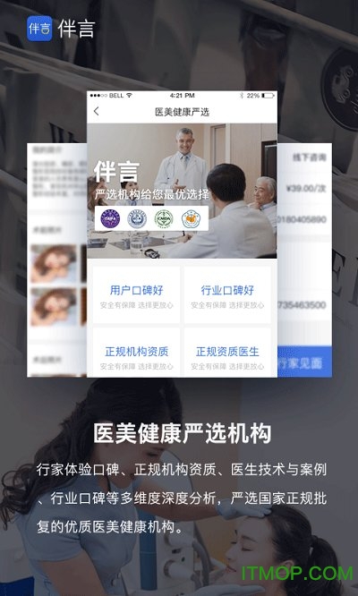 伴言app是一款专注于医疗美容健康领域的专业服务平台,致力于为用户提供安全可靠的医美咨询与解决方案。在这里,您可以轻松连接医美行业的资深专家和经验丰富的用户群体,无论是关于整形、皮肤管理还是口腔护理的问题,都能获得个性化的专业建议和真实经验分享。平台通过智能匹配系统,精准对接用户需求与行家资源,让变美之路更加高效透明。伴言app以严选口碑为核心,打造值得信赖的医美健康生态圈,帮助每一位用户实现安心变美的愿望。