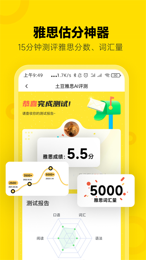 创新的测评系统能在10分钟内精准评估考生的雅思水平。通过智能算法分析听说读写各项能力,生成详细的测评报告,指出薄弱环节,并据此推荐最适合的学习路径,帮助考生有的放矢地进行备考。