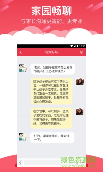 『家园沟通更顺畅』-搭建专属家校沟通平台,支持文字、语音、图片、视频等多种交流方式。内置亲子教育资源库,包含育儿知识、亲子游戏、成长测评等内容,助力构建专业化的家园共育体系。
