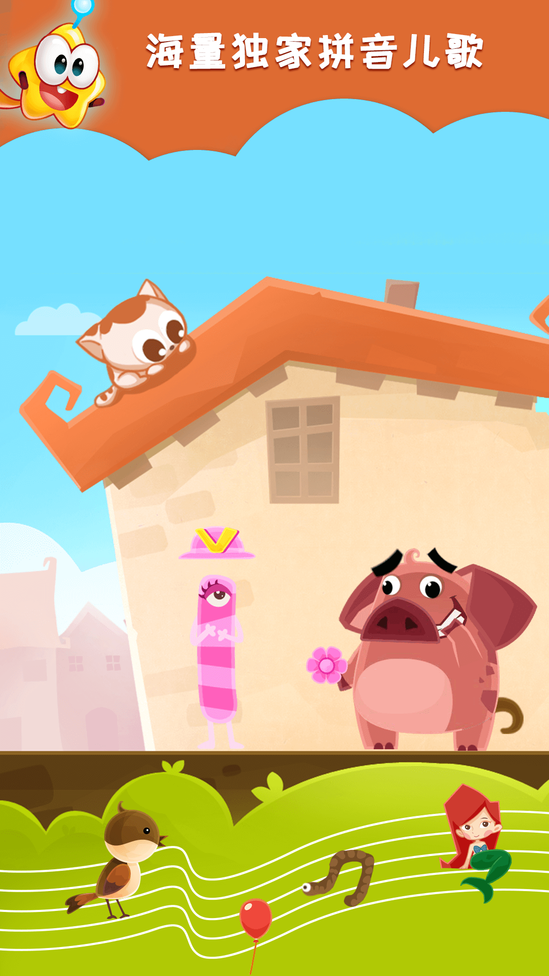 "读"、"写"、"拼"、"测"四大模块汇集了大量的、儿歌、互动性趣味小游戏,从视觉、听觉、游戏互动操作中体验!游戏场景丰富多彩,包括拼音农场、字母城堡等主题,让孩子在玩耍中学习。趣味拼读环节,实时录音,智能评分系统可以准确识别孩子的发音,让孩子不仅会认会写,还能大声读出来!系统还会根据发音情况给出针对性建议。