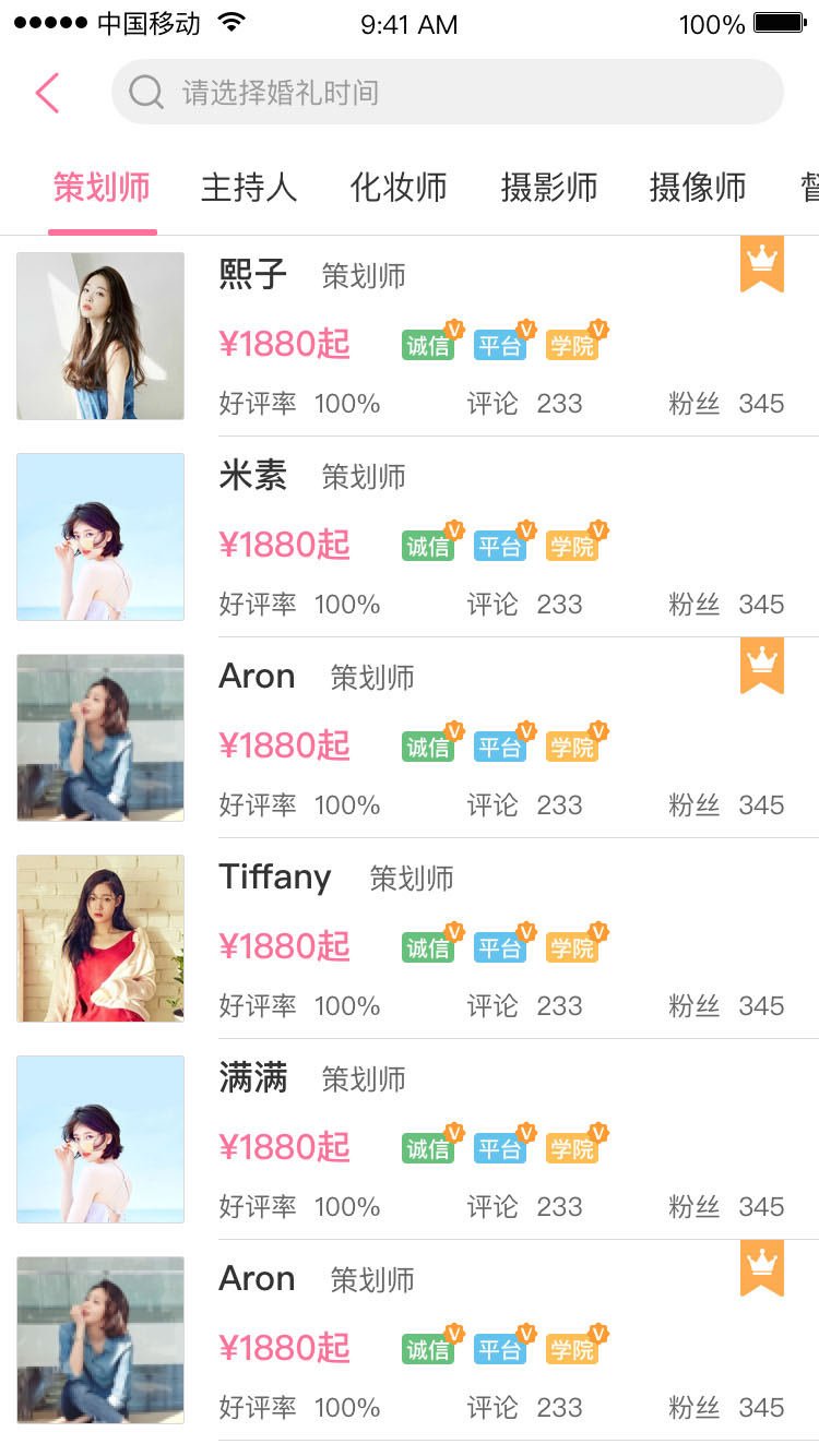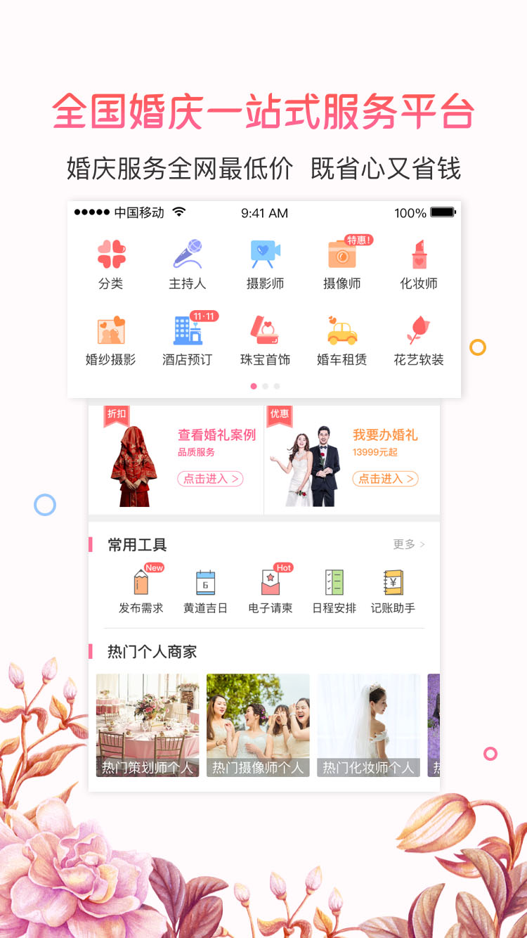 喜GO作为专业的婚嫁服务平台,为新人们搭建了与优质婚礼服务商直接沟通的桥梁。通过智能匹配系统,新人可以快速找到符合需求的婚礼策划师、摄影师、化妆师等专业人士,直接在线预约服务,省去中间环节,确保服务质量的同时还能获得更优惠的价格。平台还提供婚礼筹备全流程指导,帮助新人轻松应对婚礼筹备中的各种挑战。