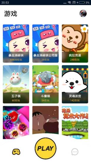 游戏库包含经典复刻与原创玩法两大类别,既有怀旧向的俄罗斯方块对战,也有融合AR技术的实景捉迷藏。每周三更新主题游戏包,节假日更有限定玩法,比如春节专属的电子爆竹消除游戏。