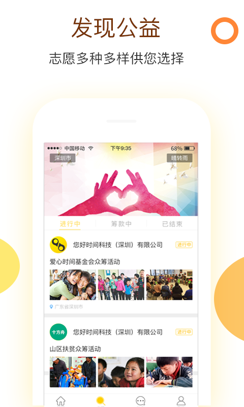 爱心随行:通过智能定位功能,为您推荐身边的公益活动,让每一份爱心都能轻松送达。