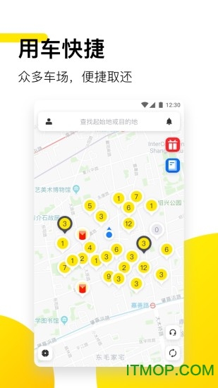 智能找车功能:通过APP实时查看附近可用车辆,点击预定即可立即用车,全程无需人工交接
