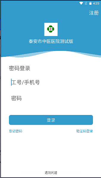 首次登录需要先注册激活账号,点击右上角注册按钮进入注册页面,填写工号、手机号、验证码并设置密码,注册成功后即可登录。建议使用常用手机号注册,便于找回密码。