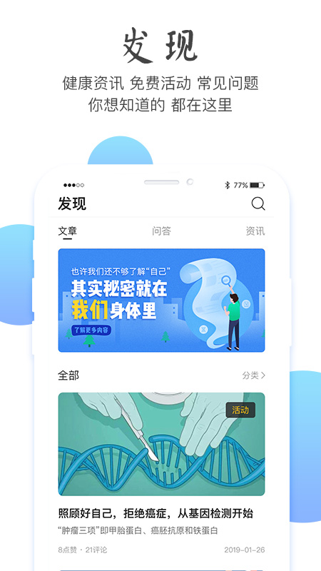 新增元旦特别活动,参与即可获得专属健康礼包和专家咨询优惠。优化了基因检测报告展示方式,新增3D健康数据可视化功能。修复了部分用户反馈的BUG,提升了系统稳定性和运行速度,让用户体验更加流畅。