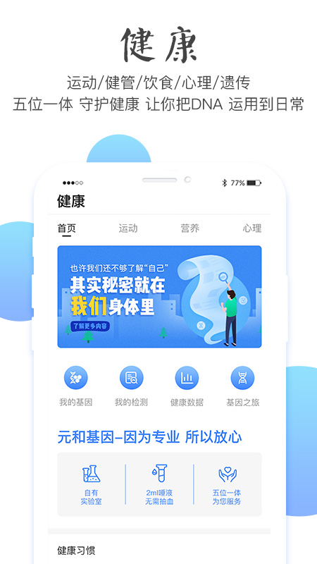 元和大健康是一款以基因检测为核心的智能健康管理APP,致力于为用户提供终身免费的个性化健康服务。通过先进的基因检测技术,只需2ml唾液样本,就能为用户定制专属的饮食计划、运动方案和体检建议。APP还整合了丰富的健康知识库,帮助用户深入了解基因与健康的关系,找到最适合自己的健康生活方式。专业的健康顾问团队随时待命,为用户解答各种健康疑问。