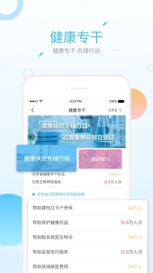 各级卫计工作人员可以通过健康甘肃管理版进行健康扶贫摸底调查、“一人一策”制定工作,系统会自动生成分析报告和帮扶建议,提高工作效率。