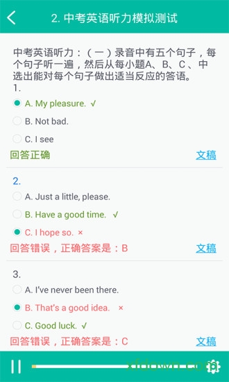 中考听力模拟题库包含100+套仿真试题,题型设置和难度系数完全参照各地中考标准。每套试题都配有详细的答案解析和听力原文,学生可以通过反复练习熟悉考试节奏,掌握答题技巧,在中考听力部分取得优异成绩。