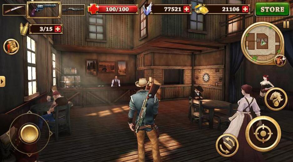 《枪火西部》是由知名游戏开发商CandyMobile倾力打造的一款西部题材动作手游。在这个弱肉强食的西部世界,你将扮演一位独来独往的牛仔,在充满背叛与阴谋的荒野中求生存。游戏完美呈现了西部片中的经典元素:尘土飞扬的小镇、危机四伏的酒馆对决、惊心动魄的火车劫案...每一个场景都让人仿佛置身于那个狂野的年代。你的每一个选择都将影响故事走向,是成为令人闻风丧胆的亡命之徒,还是维护正义的赏金猎人?当左轮手枪的扳机扣动的那一刻,命运就在你手中。