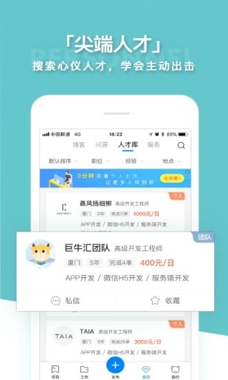 免费接单,无需成本:用户注册登录后即可直接与需求方沟通,零成本获取项目机会。