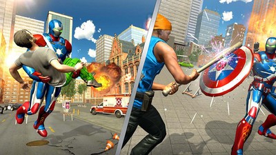 在遇到不同的情况时,可以用不同的武器进行攻击,这样才能消灭敌人;游戏提供了丰富的武器系统,从美国队长的经典盾牌到高科技能量武器应有尽有。你不仅仅需要消灭敌人,在路上行人需要帮助的时候你也需要保护他们的安全;游戏特别设计了多种救援任务,包括护送平民、拆除炸弹等多样化玩法。每一次与暴徒发生对战时,你都需要战胜他们,这样才能让人类更加相信你;战斗系统采用即时制,玩家需要根据敌人类型灵活调整战术。