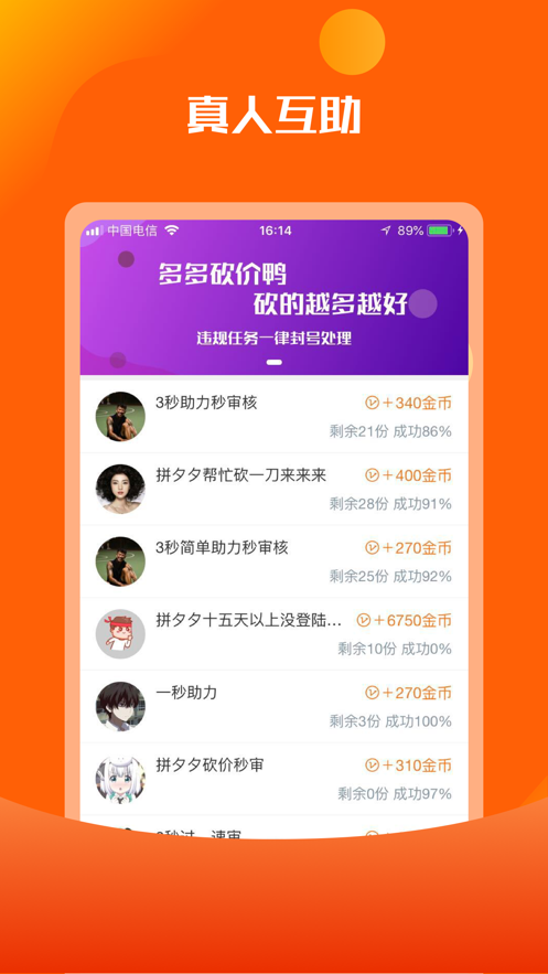 多多砍价鸭是一款创新的社交电商应用,通过问卷互助、拼团砍价等多种互动方式,让用户轻松获得实惠。在这里,您只需动动手指完成简单的互助任务,就能创造实实在在的价值。平台采用零门槛参与机制,无需任何资金投入,真正实现"人人可参与,人人可获利"的理念。特别值得一提的是,当您发布砍价互助任务后,平台庞大的用户群体将迅速响应,帮助您完成砍价目标,彻底解决传统砍价过程中"拉不到人"的烦恼,让原本繁琐的砍价过程变得简单高效。
