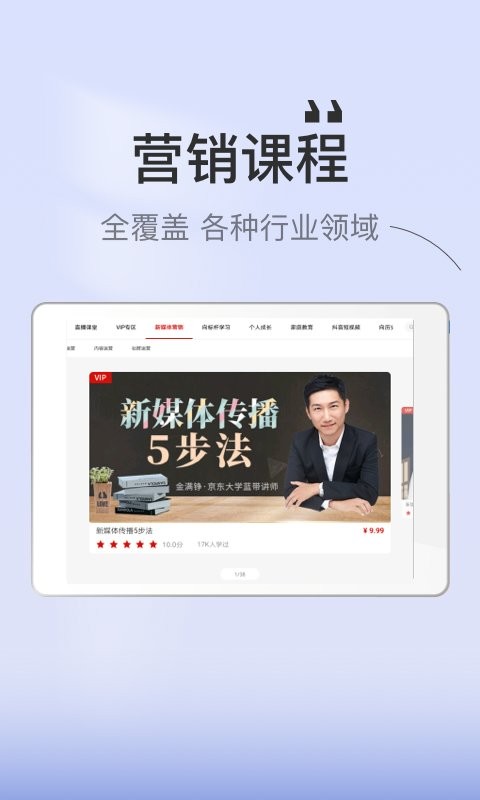 全覆盖各种行业领域,包含市场营销、品牌推广、客户管理等实用课程,帮助学员掌握最新营销技巧