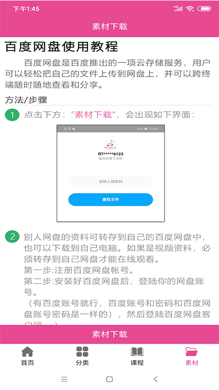 平台所有教学资源均通过百度网盘提供安全稳定的下载服务。百度网盘作为国内领先的云存储平台,支持多终端同步和文件共享功能。下载教程详细指导用户完成从注册到使用的全过程:在App内点击"素材下载"按钮后,系统将自动跳转至专属资源页面。用户可将教学视频等资料转存至个人网盘实现在线播放,或直接下载到本地设备。建议优先使用客户端进行操作,确保大文件传输的稳定性。所有素材均经过专业团队审核,保证内容的权威性和实用性。