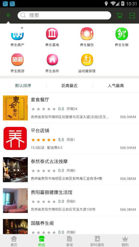 本地服务:智能推荐周边优质养生场所,包括养生馆、养生餐厅、有机食材店等;