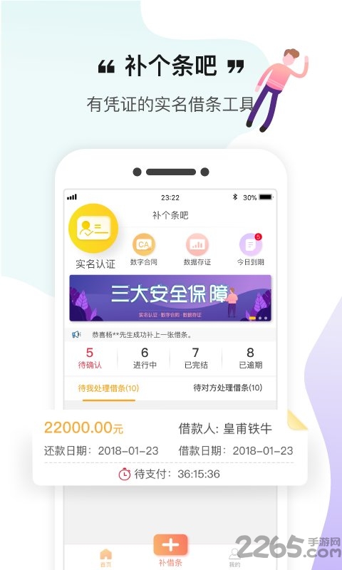 补个条吧app官方版是一款专注于移动端电子借条服务的专业应用。通过数字化手段革新传统借贷流程,为用户提供安全便捷的电子合同签署平台。该应用采用区块链技术确保数据不可篡改,并配备多重加密保护用户隐私。无论是个人小额借贷还是商业资金往来,都能通过实名认证、CA数字证书等机制建立具有法律效力的电子凭证,让每一笔资金往来都有据可查。系统还提供智能还款提醒、信用评估等增值服务,真正实现借贷过程的规范化、透明化管理。
