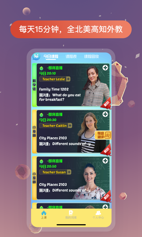 无需提前预约,每天固定时段开放直播课程,孩子可以直接参与互动学习,与专业外教实时交流,提升英语听说能力。