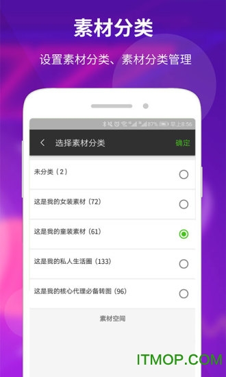 提供智能分类功能,用户可以按照不同主题创建专属素材库。例如"童装新品素材库"、"女装促销素材库"、"个人摄影作品集"等。每个分类都可以自定义名称和封面,让素材管理更加直观高效。