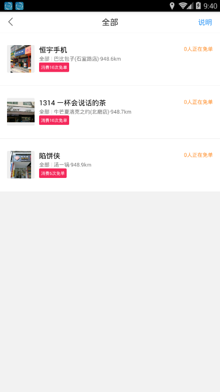 【多样服务】覆盖餐饮、零售、休闲娱乐等多个消费领域,包括饭店、奶茶店、服装店等各类商家。只要商家已入驻快快免单app,您就有机会获得免单优惠。