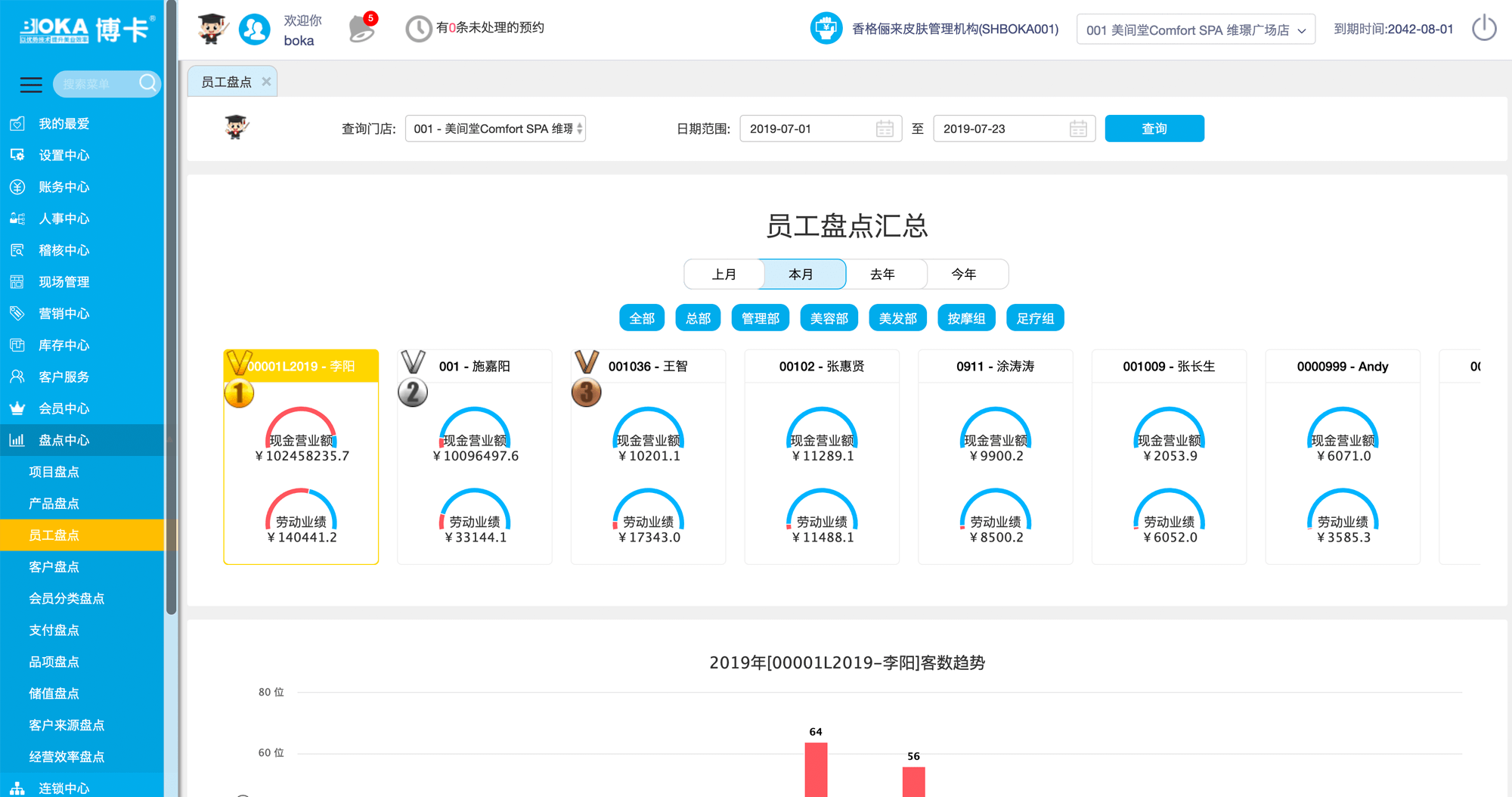 人事中心:完善的员工管理系统,包括考勤、排班、绩效等全方位功能。