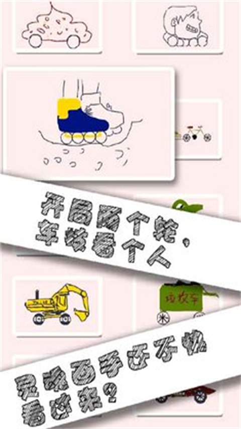 画个车官方版是一款充满创意与趣味的绘画赛车闯关游戏,它将玩家的想象力与驾驶乐趣完美结合。游戏的核心玩法简单而独特:开局只有两个轮子,剩下的全靠你的脑洞!在这里,你可以尽情挥洒创意,从零开始设计专属座驾,无论是南瓜车、拖拉机、自行车,甚至传说中的汗血宝马,只要你能画出来,它们就能在赛道上飞驰。更妙的是,你不仅能创造车辆,还能亲手铺设赛道,真正实现"所画即所得"的沉浸式体验。