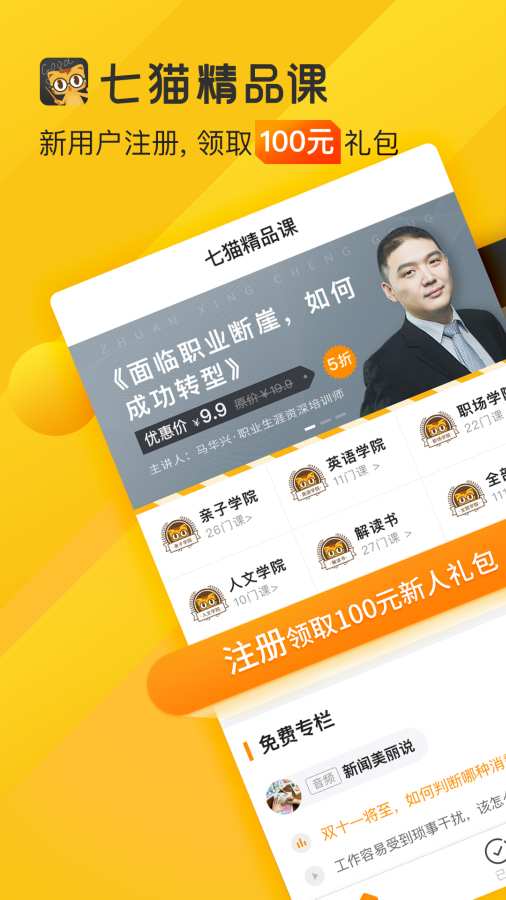 立即下载七猫精品课,开启你的成长之旅!平台将持续更新优质内容,陪伴每一位用户实现自我突破。无论你的目标是什么,七猫精品课都将成为你成长路上的得力助手。
