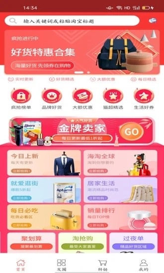 券盟主是一款功能强大的购物返利应用,汇聚了全网优质商品资源,为用户带来极致的省钱体验。平台精选各大电商平台的爆款商品,提供超值优惠券和专属折扣,让您以最低价格入手心仪好物。无论是日常用品还是品牌商品,都能在这里找到惊喜折扣。更支持淘宝直接跳转支付,购物流程安全便捷。新用户注册即享专属礼包,还有高额返现可提现,让您的每一笔消费都物超所值。