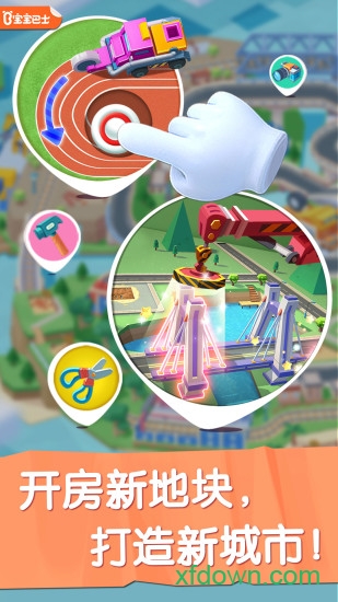 游戏提供了6大主题建筑区域,完全由孩子们自主创建和管理,包括体育馆、商业区、居民区、公园、铁路和桥梁,培养孩子的规划能力和责任感。