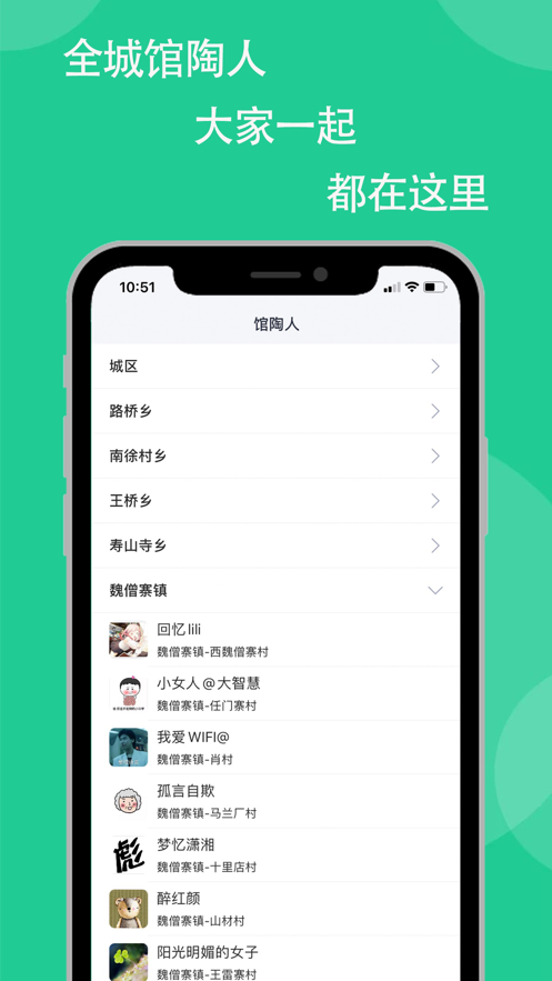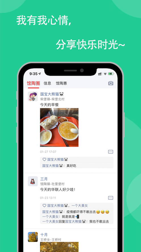 选择馆陶圈,就是选择了一种更便捷、更智能的本地生活方式。在这里,您可以分享快乐时光,传递生活正能量;可以一键发布信息,实现全城共享;更能轻松发现馆陶好店好活动,与同乡人一起享受优惠福利。快来加入馆陶圈,开启您的智慧本地生活新体验吧!