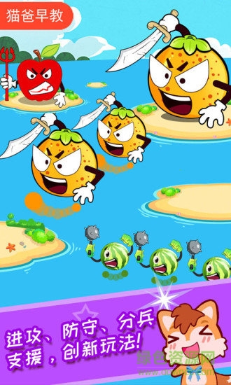 游戏采用直观的拖拽操作,小朋友只需用手指点击水果并滑动到目标岛屿,就能派遣部队发起进攻。每次出征的兵力会自动计算,确保游戏平衡性。特殊手势操作如双指缩放可以查看全局战况,三指轻拍可快速召回部队。