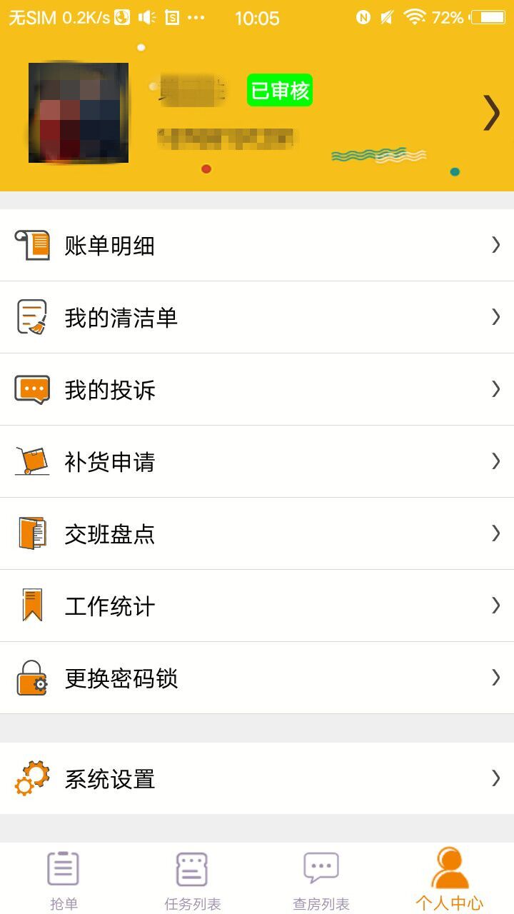 打扫订单:根据打扫的步骤来依次完成任务,包括房间清洁流程、易耗品补充、缺损物品补充、房间打扫图片上传等等。系统提供标准化的清洁流程指引,确保服务质量统一。图片上传功能可记录工作成果,为后续审核提供依据。