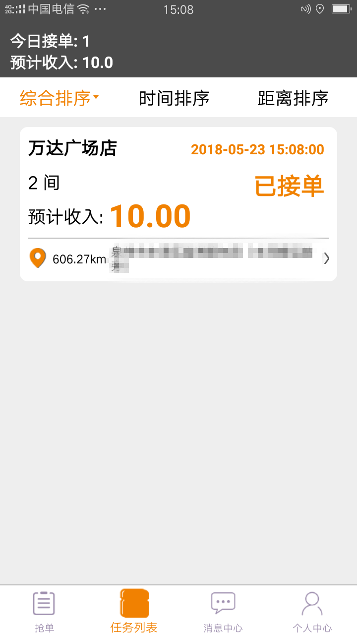 查看订单:清洁人员可以查看目前所抢到订单的详情和订单详情。订单详情页面包含房间号、清洁要求、完成时限等关键信息,并支持地图导航功能,帮助清洁人员快速定位服务地点。历史订单记录功能让工作统计更加清晰明了。