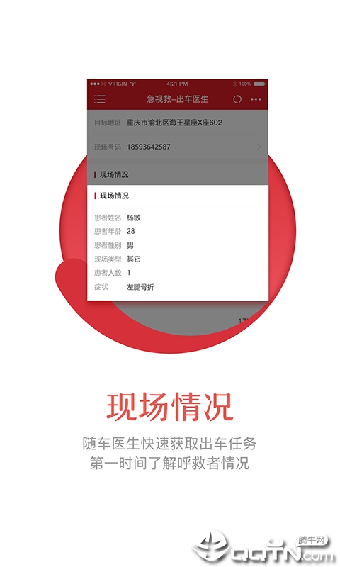 现场情况实时传输:随车医生可以快速获取出车任务详情,并通过高清视频实时了解呼救者状况。