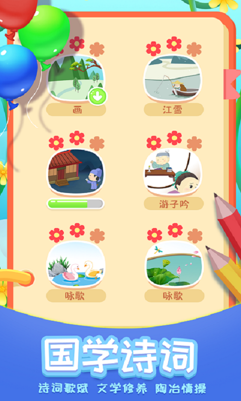 通过精选的诗词歌赋,培养孩子的文学修养和审美情趣,在潜移默化中陶冶情操,让孩子从小感受中华传统文化的魅力。