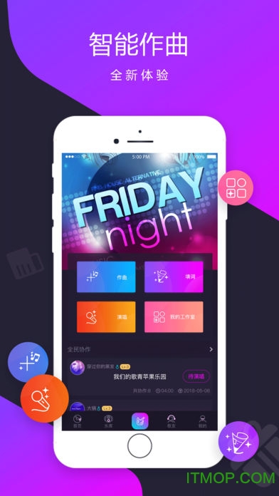 浏览与观赏平台内最优质的明星与音乐人的作品,进行收藏,携手创作,改编,等。榜单实时更新,让你第一时间了解音乐潮流趋势,发现更多优质作品。