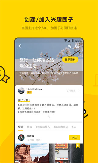 下载软件后打开进行注册登录 新用户可通过手机号快速注册,也可使用第三方账号一键登录。注册完成后建议完善个人资料并设置双重验证,以提升账户安全性。平台采用渐进式引导设计,新手能快速掌握核心功能。 进入首页选择自己感兴趣的内容 首页采用智能推荐算法,会根据用户浏览习惯动态调整内容展示。支持按分类筛选、关键词搜索、热门标签等多种内容发现方式。长按图片可快速收藏或分享,滑动操作体验流畅自然。 可以在软件中参加比赛 平台定期举办主题创作赛事,获奖作品不仅能获得丰厚积分奖励,还有机会被推荐至合作媒体展示。参赛流程简单直观,提交作品时可选择是否同步进行版权存证。 也可以在其中查找自己感兴趣的圈子 用户可基于地理位置、创作主题等维度加入兴趣圈子。每个圈子都有专属的内容池和讨论区,支持创建子话题、发起线上活动等深度互动。优质圈子还会获得平台流量扶持。更新日志