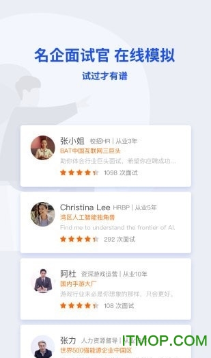 我们汇集了来自互联网大厂、世界500强等知名企业的资深HR和面试专家,他们不仅熟悉各行业用人标准,更掌握最新面试趋势。通过与这些专业人士的模拟面试,你能获得最接近真实面试的体验,了解面试官的评分标准,发现自身不足并及时调整。每次模拟后还会收到详细的评估报告,助你针对性提升。