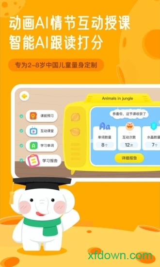 河小象英语是一款专为3-8岁儿童设计的趣味英语启蒙软件,通过生动有趣的互动课程和科学的教学体系,帮助孩子在轻松愉快的氛围中掌握英语基础。软件采用符合儿童认知特点的卡通动画形式,结合专业外教真人发音,打造沉浸式学习环境。从字母认知到日常对话,课程内容循序渐进,既能激发孩子的学习兴趣,又能培养良好的语言习惯。家长还可以通过智能学习报告,随时了解孩子的学习进度和掌握情况。