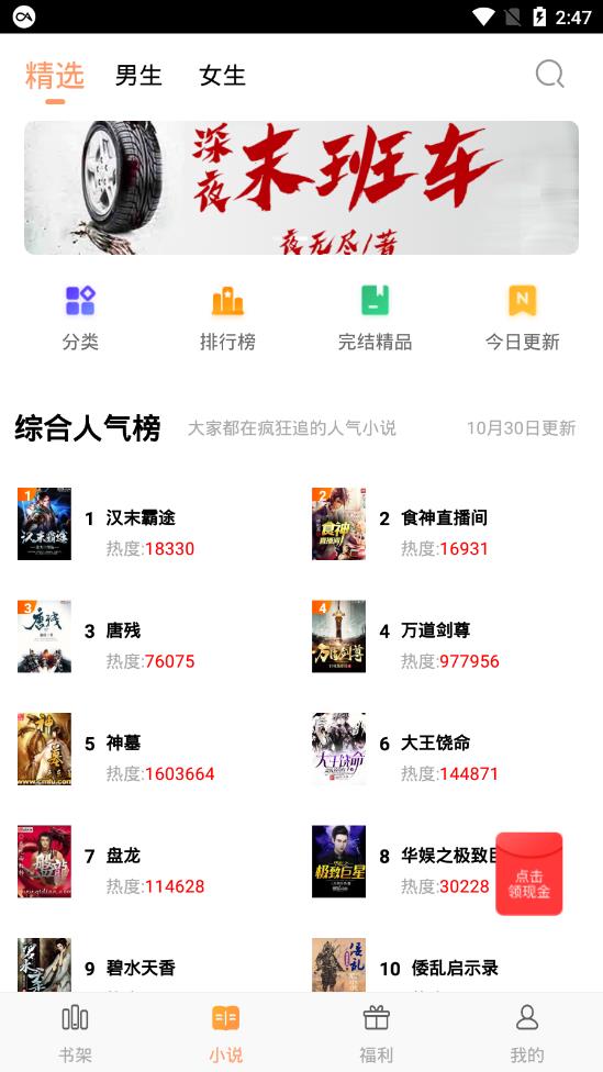 海量书库资源:收录数百万部正版小说,涵盖玄幻、言情、悬疑等全品类,满足各类读者需求。