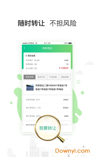 一度店手机版是一款创新性的新能源服务平台,巧妙融合区块链技术与大数据分析,为用户提供光伏电站投资与管理的全新体验。通过这款应用,用户可以轻松购买或转让光伏电站份额,实时追踪发电数据与收益情况,让清洁能源投资变得简单透明。平台采用智能化运维体系,确保电站高效运转,同时为用户创造稳定收益。无论是环保爱好者还是理财投资者,都能在这里找到适合自己的新能源参与方式。