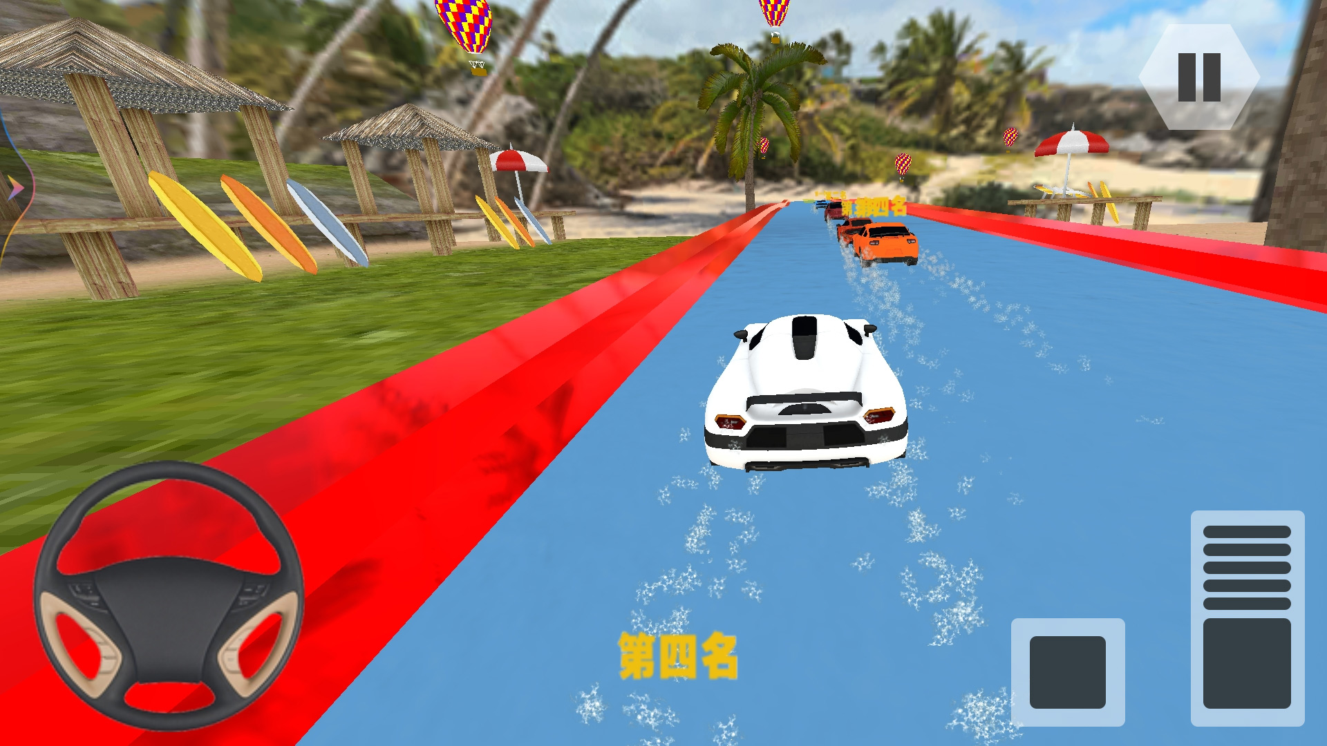 顶部地图效果:游戏特别设计了水主题公园赛道,在这里玩家可以体验疯狂的水滑梯竞速,驾驶现代跑车在特殊的水上赛道飞驰。这种独特的赛道设计为玩家带来了前所未有的赛车体验,让传统的竞速游戏焕发新生。
