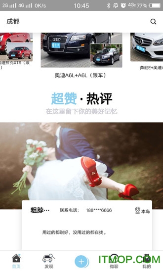 车主自由发布车辆供新人选择婚车,操作简单快捷,让您的爱车轻松变现;新人直面车主,价格透明无隐藏费用,平台全程担保交易,确保资金安全;婚车实拍认证功能,让您所见即所得,避免虚假信息;车主接单必须交纳保证金,违约将承担赔偿责任,让您用车更放心;自营豪车超跑板块,为商业活动、自驾接机等提供高端用车服务;邀请好友赚佣金功能,让您轻松分享平台福利,赚取订单提成。