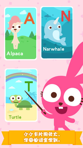 字母动物卡app是泡泡兔系列专为幼儿设计的趣味学习软件,通过生动有趣的互动方式帮助2-6岁儿童轻松掌握英语字母。软件采用精美的卡通设计,每个字母都配有对应的可爱动物形象,如A对应Ant(蚂蚁)、B对应Bear(小熊),让学习过程充满乐趣。专业配音朗读字母和单词发音,配合趣味动画效果,从视觉、听觉多维度激发孩子的学习兴趣,是家长进行英语启蒙教育的理想选择。