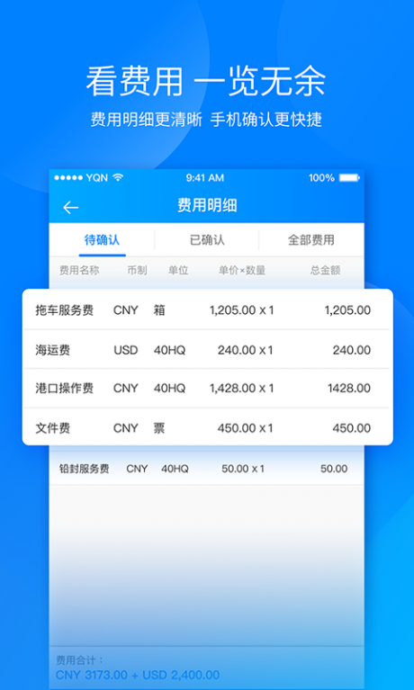 每个物流订单的费用明细清晰透明!通过手机快速确认费用更方便。平台提供多种支付方式和货币结算,支持费用明细导出功能,方便用户进行财务对账和成本分析,让每一分物流支出都明明白白。