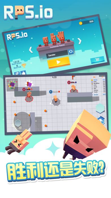 本作完美还原了猜拳的经典规则,并将其创新性地融入竞技对战玩法中。玩家需要灵活运用三角克制关系,在竞技场中击败对手的同时躲避天敌的追击。随着游戏进程,玩家可以解锁高级竞技场,体验道具作战的乐趣。游戏还设有全球排行榜系统,玩家可以通过不断提升技术,冲击排行榜前列,成为真正的猜拳大师。